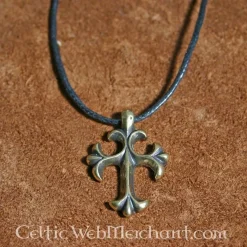 Dit sieraad is een replica van een 15de eeuws kruis uit de kerk van Aachen. Kruisjes zoals deze werden overal in de katholieke wereld gedragen. Dit kruisje is gemaakt van verzilverd messing en is 3,5 x 2,5 cm groot.