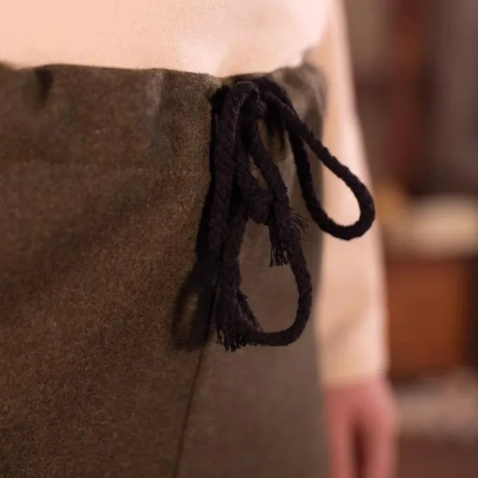 Deze broek is gebaseerd op stofresten van een Viking broek gevonden in Skjoldehamm. Dit model broek is speciaal gemaakt voor dames, dus perfect voor schildmaagden, rogues en andere Viking en fantasy personages. De broek is gemaakt van een comfortabel wolmix. Ideaal voor onder een (Viking) tuniek!