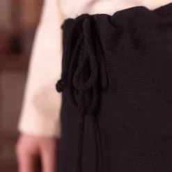 Deze broek is gebaseerd op (vroeg)middeleeuwse broeken. Dit model broek is speciaal gemaakt voor dames, en perfect voor allerlei fantasy personages. Met de veter om de middel kan je de broek stevig vastmaken, zo is er geen riem nodig bij de broek. Een comfortabele broek voor festivals, Comic Cons en LARP.