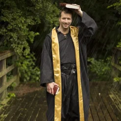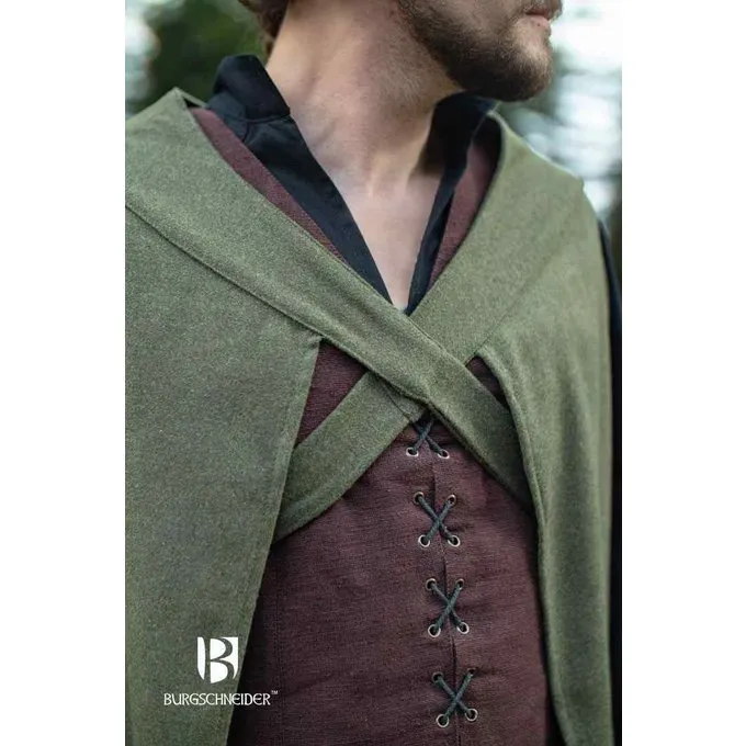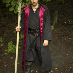 Deze mantel kan op verschillende manieren worden gedragen. Hij kan met strips op de borst worden gesloten. De mantel heeft aan weerszijde een opening waardoor je de armen kunt doen. Deze mantel is ideaal voor bijvoorbeeld een epische Assassin’s outfit