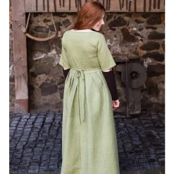 Deze prachtige Middeleeuwse jurk is zowel elegant als praktisch in gebruik. Praktisch, omdat de mouwen van deze jurk los leverbaar zijn. Ze kunnen dus gemakkelijk naar wens worden aangepast Elegant omdat de vormen van deze jurk uitblinken ten opzichte van de meeste Middeleeuwse jurken. Deze jurk is ontworpen door een gerenomeerd modeontwerpster. Hij is gebaseerd op 14de eeuwse originelen, maar werd ook in de 13de en 15de eeuw gebruikt. Deze jurk kan goed worden gecombineerd met een onderjurk, waardoor uw historische uiterlijk levensecht lijkt. De jurk is ook erg geschikt voor de wat grotere maten en doet de dekolleté goed uitkomen.