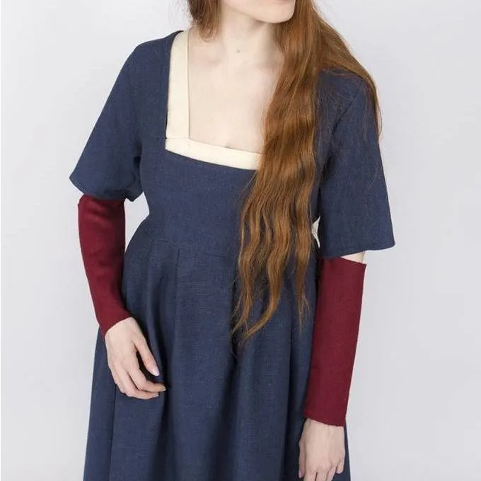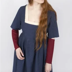 Deze mouwen zijn gebaseerd op afbeeldingen in Middeleeuwse manuscripten. De mouwen kunnen worden gecombineerd met de Middeleeuwse jurk Frideswinde, waardoor u zelf de kleursamenstelling kunt bepalen. Deze handige mouwen kunnen snel worden afgenomen tijdens arbeidsintensieve activiteiten. Hierdoor wordt de jurk multi-functioneel.