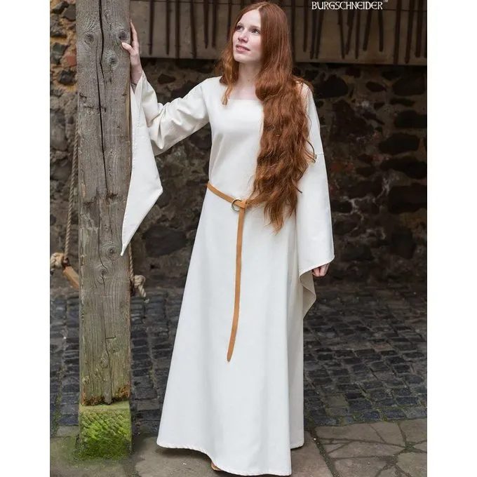 Deze onderjurk met uitlopende mouwen is gemaakt naar verschillende hoge en laat middeleeuwse voorbeelden. Hij kan gedragen worden onder een jurk voor een extra elegant effect.