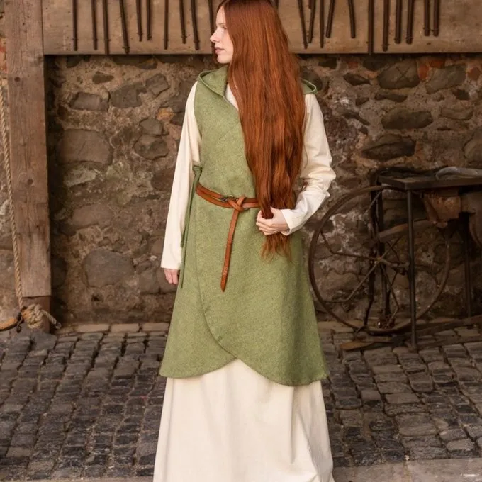 Met deze overjurk geeft je extra allure aan je LARP, Cosplay of festival outfit. Hij heeft een kap die over de schouders valt. Met een riem kan je de overjurk vastmaken om hem op een elegante manier over je jurk of tuniek te dragen.