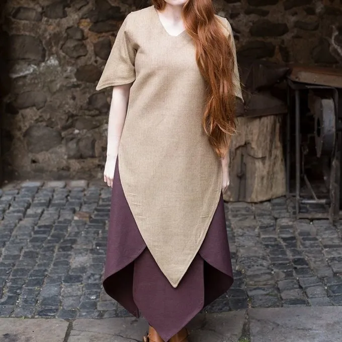 Met de tuniek Laylin kan je veel verschillend outfits creëren voor Larp en Cosplay. De tuniek is gezoomd bij de nek, de mouwen en aan de onderkant. De tuniek heeft puntige vormen: de mouwen lopen puntig uit en ook de onderkant.