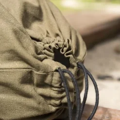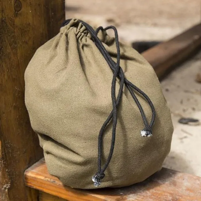 Deze buidel heeft katoenen veters waarmee je hem kunt vastbinden aan je riem. Ook kan je hem gewoon los aan de hand dragen. Hij heeft een vrij grote capaciteit, dus je kunt al je belangrijkste spullen op een event erin bewaren.