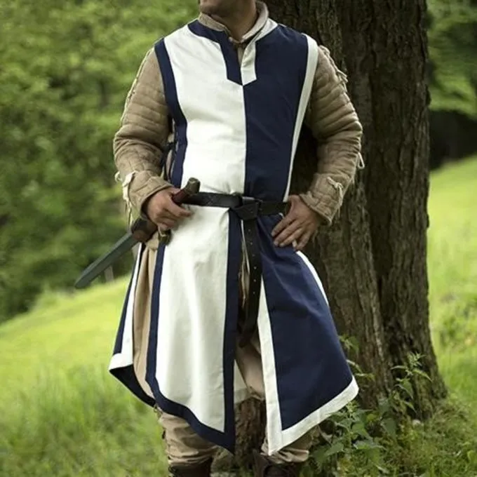 Deze wapenrok is gemaakt naar historische originelen en kan over bepantsering of middeleeuwse kleding worden gedragen. Aan de zijkant heeft hij lintjes om hem vast te maken. Aan de zijkanten, voor- en achterkant heeft hij splits voor een optimale bewegingsvrijheid. Geschikt voor middeleeuwse re-enactment, LARP en festivals.