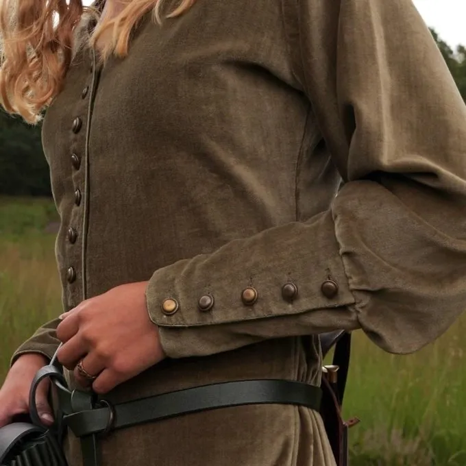 Materiaal: 100% katoenfluweel / / Maat: S t/m XXL (maattabel zie hieronder) / / Kleur: groen / / Lengte: ca. 145 cm / / Wasvoorschrift: handwas, kledingborstel of stomen. Niet strijken! / / Gebaseerd op een historisch origineel