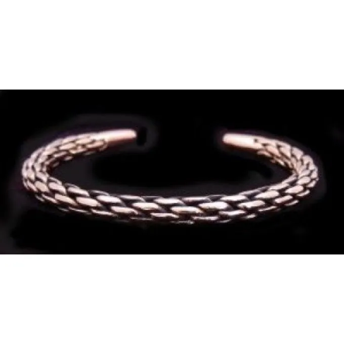 Deze armband is gemaakt van massief, gevlochten brons. Hij weegt 37,2 gram.