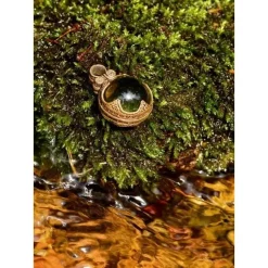 Dit sieraad is een replica van een 11de eeuws origineel teruggevonden op Gotland. Bergkristal was tijdens de vroege middeleeuwen ook bij de Vikingen zeer populair. Grote en kleine stukken bergkristal werden in sieraden verwerkt. Deze replica heeft in plaats van Bergkristal geslepen glas.