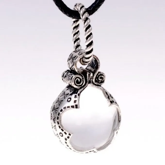 Dit sieraad is een replica van een 11de eeuws origineel teruggevonden op Gotland. Bergkristal was tijdens de vroege middeleeuwen ook bij de Vikingen zeer populair. Grote en kleine stukken bergkristal werden in sieraden verwerkt. Deze replica heeft in plaats van Bergkristal geslepen glas.