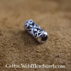 Dit Viking sieraad is bedoeld voor de baard of lokken maar is natuurlijk ook geschikt als hanger aan ketting of veterketting. Heeft een mooi ruit/spiraal patroon, zeer geliefd in de middeleeuwen. De afmeting is ca. 1,70 x 0,7 x 0,7 cm, en het gewicht ca. 2,6 gram. Gemaakt van Sterlingzilver .