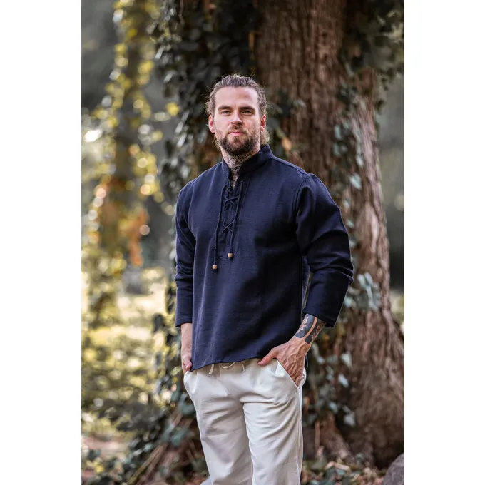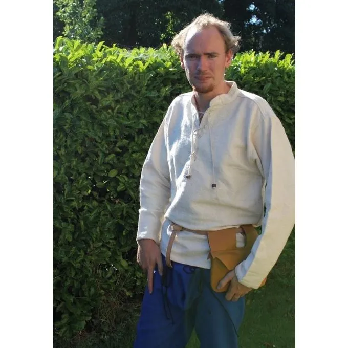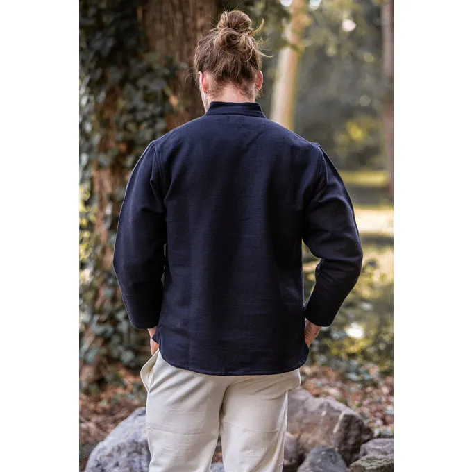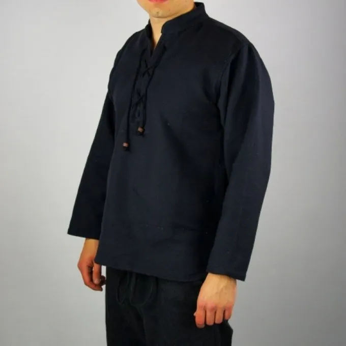 Dit hemd is gemaakt van dik, met de hand gewoven katoen. Hij is aan de halsรจdicht te maken met een koord. Verkrijgbaar in het crรจme, zwart en grijs in maat S t/m XXXL.