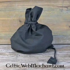 Deze geldbeurs is gebaseerd op verschillende middeleeuwse originelen. Hij kan worden gesloten met een leren veter en aan een riem worden gehangen.
