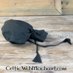 Deze geldbeurs is gebaseerd op verschillende middeleeuwse originelen. Hij kan worden gesloten met een leren veter en aan een riem worden gehangen.