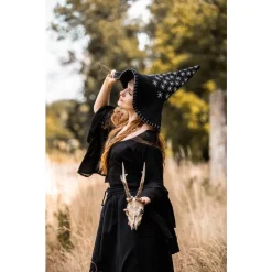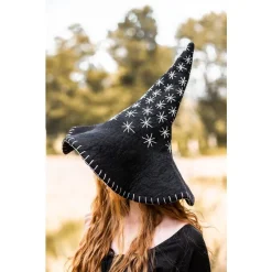 Deze luxe heksenhoed is een onmisbaar accessoire voor iedere heks. De hoed is gemaakt van wolvilt en heeft een extra brede rand, waardoor je beter je haar of gezicht kunt verbergen. Het biedt ook de mogelijkheid om bijvoorbeeld takken in de hoed te verwerken.