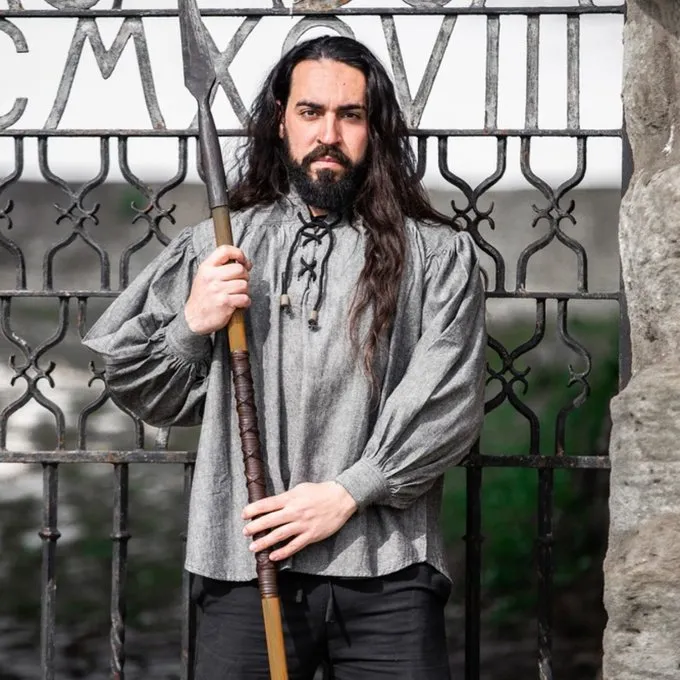 Dit hemd is gemaakt van een katoen-linnenmix. De hals is dicht te maken met een koord. Hij is verkrijgbaar in het blauw en crëme in maat S t/m XXXL.