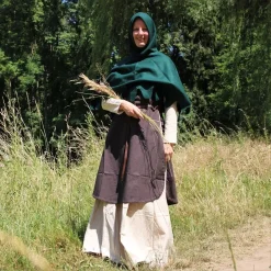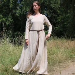 Deze eenvoudige jurk is gemaakt van viscose. De mouwen zijn lang en nauw, de rok loopt licht wijd uit.ย