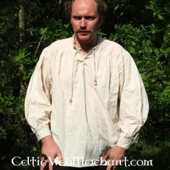 Dit hemd is goed bruikbaar voor verschillende periodes in de geschiedenis. Het is op authentieke wijze gemaakt van 100% katoen. Verkrijgbaar in de maten S t/m XXL in de kleuren crème, zwart, wit, rood of blauw.