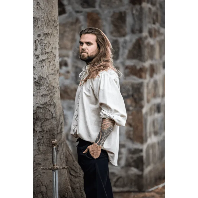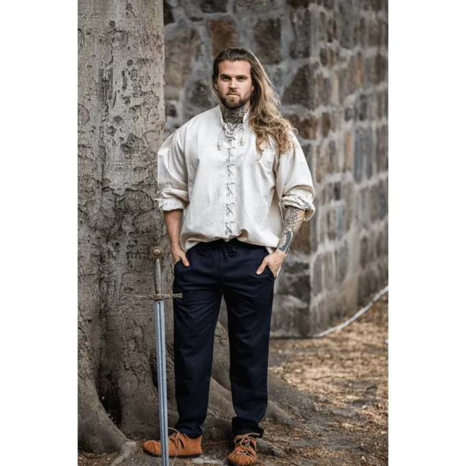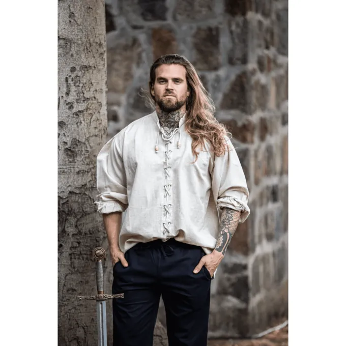 Universeel Middeleeuws hemd geschikt voor talloze outfits. Dit geweldige kledingstuk kan gemakkelijk worden gedragen onder historische broeken. Hij kan zowel voor Middeleeuwse als vroegmoderne kostuums worden gedragen. Dit hemd is ook erg geschikt om te gebruiken als onderhemd voor bijvoorbeeld Landsknechten of Tudor outfits.