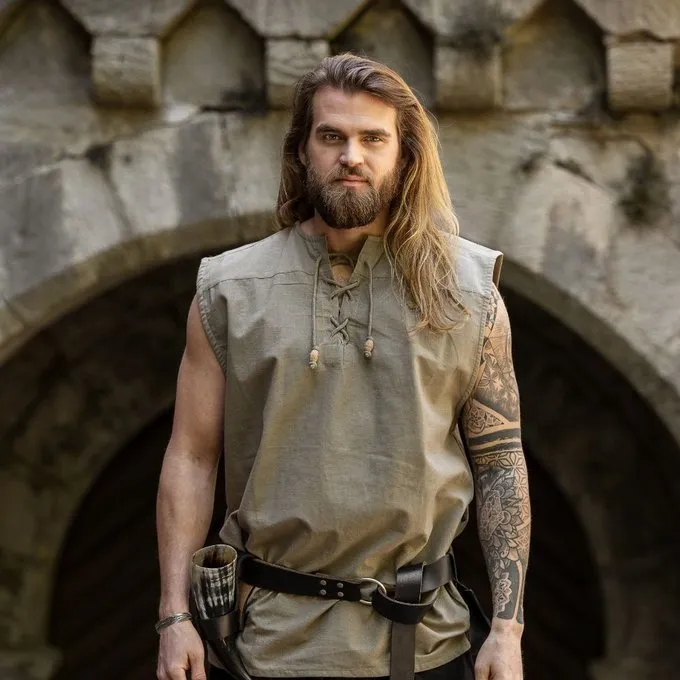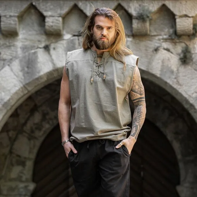Universeel hemd geschikt voor talloze outfits. Hij is mouwloos dus ideaal voor warme festival dagen! Dit geweldige kledingstuk kan gemakkelijk worden gedragen bij historische broeken. Hij kan zowel voor Middeleeuwse als Piraten of vroegmoderne kostuums worden gedragen. Dit hemd is ook erg geschikt om te gebruiken als onderhemd voor bijvoorbeeld Landsknechten of Tudor outfits.