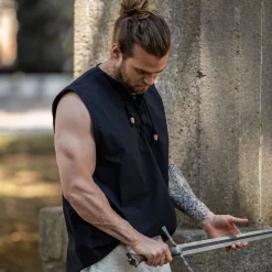 Universeel hemd geschikt voor talloze outfits. Hij is mouwloos dus ideaal voor warme festival dagen! Dit geweldige kledingstuk kan gemakkelijk worden gedragen bij historische broeken. Hij kan zowel voor Middeleeuwse als Piraten of vroegmoderne kostuums worden gedragen. Dit hemd is ook erg geschikt om te gebruiken als onderhemd voor bijvoorbeeld Landsknechten of Tudor outfits.
