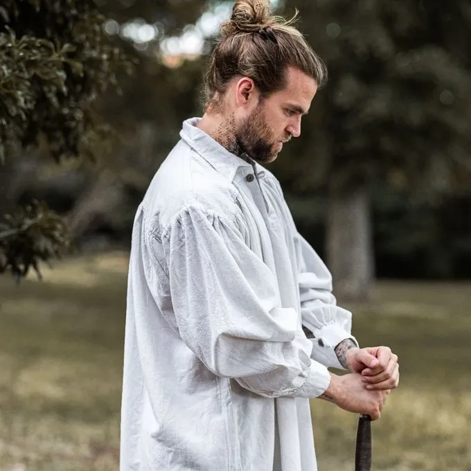 Universeel hemd geschikt voor talloze outfits. Dit geweldige kledingstuk kan gemakkelijk worden gedragen bij historische broeken. Hij kan zowel voor Middeleeuwse als Piraten of vroegmoderne kostuums worden gedragen. Dit hemd is ook erg geschikt om te gebruiken als onderhemd voor bijvoorbeeld Landsknechten of Tudor outfits.