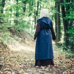 Deze wikkeljurk kan je dragen over een andere jurk, of gewoon los. Je kan hem stevig vastmaken met het katoenen koord. De jurk heeft een kap waarin je lekker kan wegkruipen als het regent of koud is. Een mooie aanwinst voor je fantasy, LARP of Cosplay outfit.