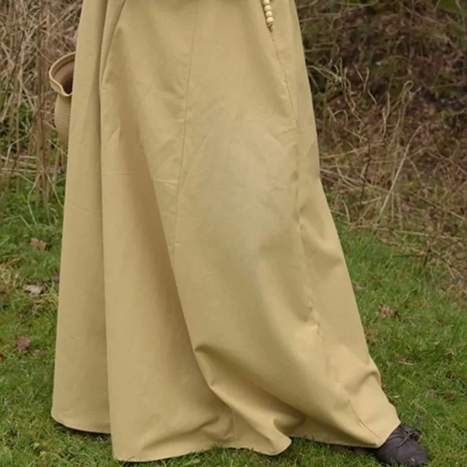 Deze middeleeuwse rok heeft een effen kleur en kan gebruikt worden om verschillende re-enactment en LARP kostuums te creëren. De rok heeft een koordje met houten kralen om de middel waardoor hij makkelijk op maat gemaakt kan worden. Ook is het een perfecte rok voor festivals met handige zakken en een lange elegante wijd uitlopende pasvorm.