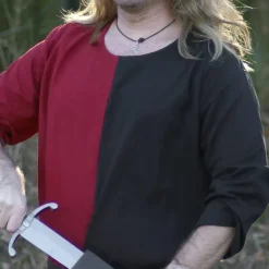 Deze tuniek is gebaseerd op 12de-15de eeuwse kledij afgebeeld op schilderijen en in middeleeuwse manuscripten. Tunieken zoals deze werden in de middeleeuwen door mannen uit alle klassen van de samenleving gedragen. Deze tuniek is beschilderd in de mi-parti stijl, een kunststijl die al in de 13de eeuw wijds werd gebruikt.