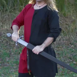 Deze tuniek is gebaseerd op 12de-15de eeuwse kledij afgebeeld op schilderijen en in middeleeuwse manuscripten. Tunieken zoals deze werden in de middeleeuwen door mannen uit alle klassen van de samenleving gedragen. Deze tuniek is beschilderd in de mi-parti stijl, een kunststijl die al in de 13de eeuw wijds werd gebruikt.