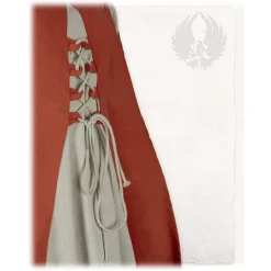 Deze jurk is geschikt voor reenactment, cosplay en LARP. De jurk is gemaakt van canvas en is tweekleurig. De twee kleuren en de trompetmouwen maken de jurk perfect voor festivals en middeleeuwse kostuums. De jurk heeft strikbanden aan zowel de voor- als achterzijde, die ervoor zorgen dat de pasvorm kan worden aangepast aan die van de draagster.