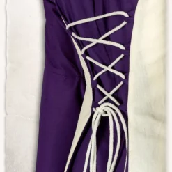 Deze jurk is geschikt voor reenactment, LARP en cosplay. De jurk is gemaakt van licht katoen. Deze stof maakt de jurk in het bijzonder ideaal voor de warmere zomerdagen. De jurk is meerkleurig. Hij heeft wijd uitlopende trompetmouwen, deze geven de jurk een speels maar vooral een elegant design. De jurk heeft een vetersluiting aan de achterkant van de jurk. Deze accentueert het figuur van de draagster en zorgt voor een betere pasvorm.