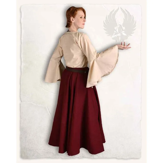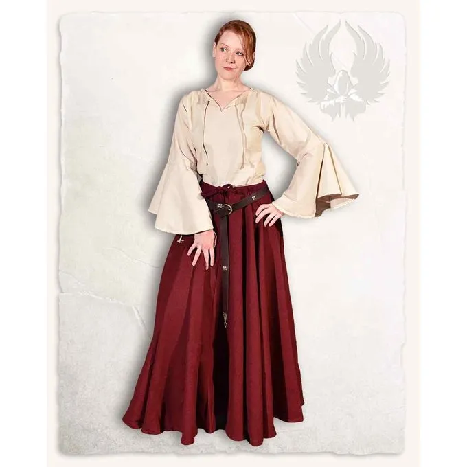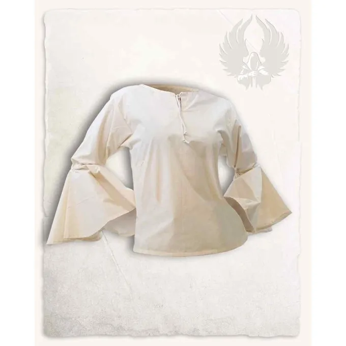 Deze blouse voor dames heeft een fijne pasvorm en is gemaakt van licht katoen. De blouse heeft mooie opvallende wijde mouwen en is te combineren met zowel rokken als jurken. De blouse staat ook zeer mooi met een korset of riem. Perfect voor een LARP bijeenkomst of middeleeuws festival.