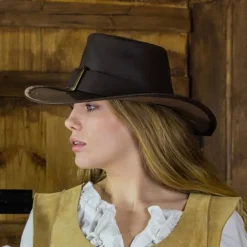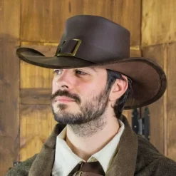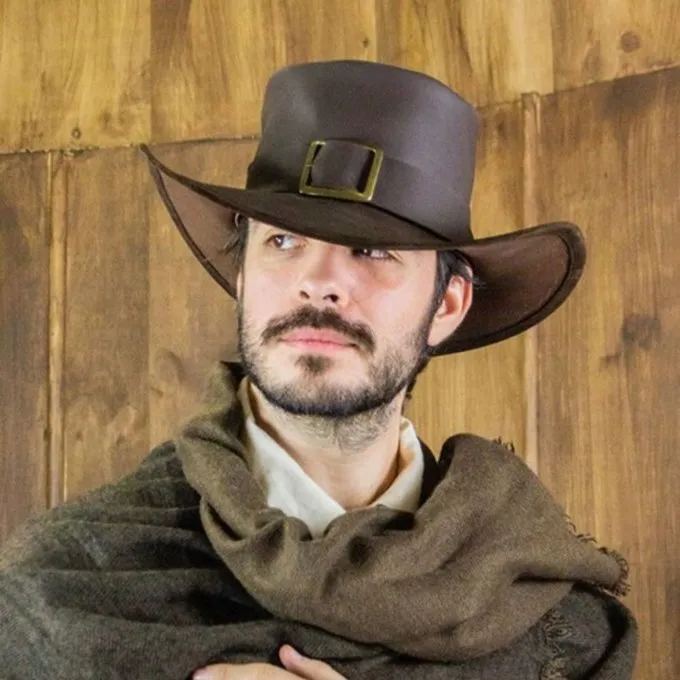 De hoeden van de Spaanse fabrikant Rawblade zijn gemaakt van hoogwaardig leer. Traditioneel vakmanschap en de hoogste kwaliteitsnormen garanderen een lange levensduur en vormvastheid. Een leren hoed is een trouwe metgezel bij slecht weer en een essentieel accessoire voor veel kostuums. Deze hoed is geinspireerd door de anti-held Solomon Kane: piraat, huurmoordenaar en pelgrim. Deze hoed is perfect voor Rogues, of andere personages met een criminele achtergrond. Een prachtige hoed om jouw festival, LARP, reenactment of Cosplay kostuum compleet te maken!