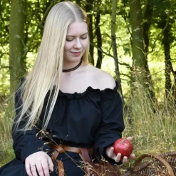 Deze elegante schouderloze blouse is gemaakt van comfortabel katoen en valt losjes rond het lichaam. De mouwen en de halslijn zijn voorzien van elastiek, waardoor ze heel mooi en volumineus vallen. Deze blouse is prachtig te combineren met een rok, korset of korsetriem. In combinatie met een rok in dezelfde kleur, kunnen blouse en rok als een jurk gedragen worden. Deze blouse is perfect voor middeleeuwse & renaissance re-enactment en piratenkostuums. Met deze blouse creëer je ook een prachtige outfit voor LARP, Cosplay en festivalbezoek.