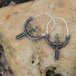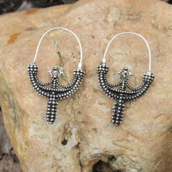 Deze oorbellen worden per set van twee verkocht en zijn gemaakt van verzilverd brons. Ze zijn 6 x 3,5 x 0,6 cm groot.
