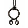 Deze Romeinse hanger is gemaakt van tin. Hij heeft de vorm van een laurierkrans, symbool van overwinning, om de zon heen, met de letters SPQR (Senatus Populus Que Romae). Hij heeft een inleg van glas.
