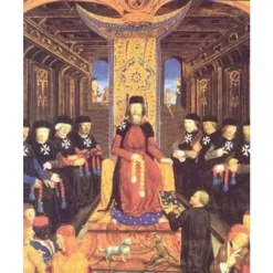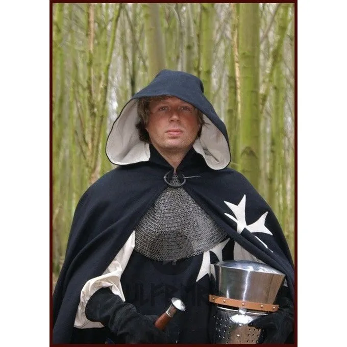 Deze mantel is naar historische modellen gemaakt. Hij is gemaakt van een wolmix en met katoen gevoerd. Hij is 143 cm lang en heeft een kap van 60 cm.