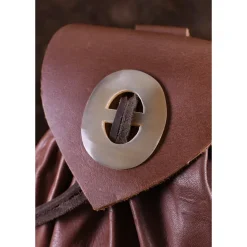 Deze geldbuidel is gebaseerd op middeleeuwse originelen in manuscripten. Hij is gemaakt van sterk leer en heeft een authentieke hoornen knoop. Met de sterke riemlus kan je hem aan je riem hangen. Perfect voor festivals en evenementen! Een mooi accessoire voor een middeleeuwse reeactment of LARP, waarin je je moderne spullen zoals telefoon en pasjes kunt opbergen.