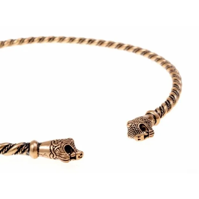 Deze torc heeft een prachtig gedraaid ontwerp en de uiteindes bestaan uit twee drakenkoppen. De torc is licht in gewicht (ca. 100 gram) en makkelijk te dragen, hij drukt niet op de hals. Hij is geschikt voor zowel mannen als vrouwen met een nekomtrek tot 55 cm. Om de torc te dragen, kan je de twee uiteindes van elkaar af buigen en zo de torc om je nek hangen. Wanneer de torc hangt, kan je de uiteindes weer naar elkaar toe buigen.