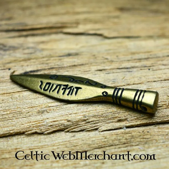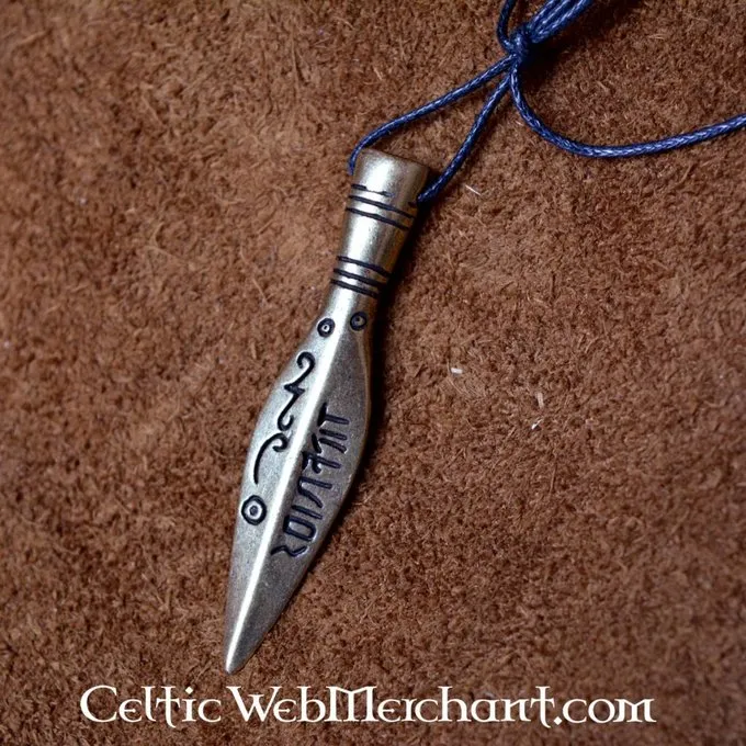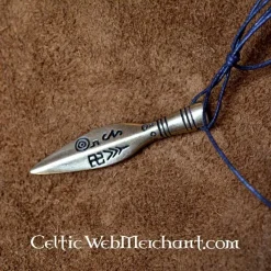 Deze hanger is een gestyleerde speerpunt. Hij bevat o.a. runeninscripties.